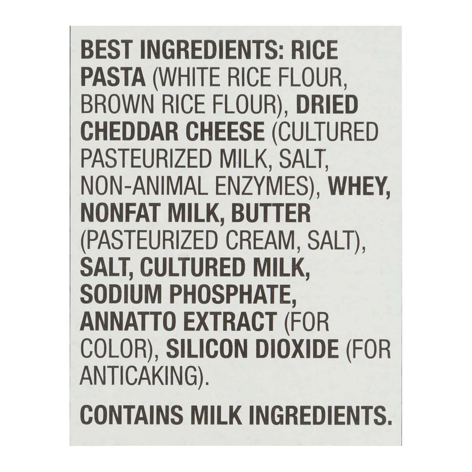 Savor the delightful combination of creamy cheese and gluten-free rice pasta in this wholesome macaroni and cheese dish. Made with real cheese sourced from hormone-free cows, this meal is a nutritious addition to your diet, offering a good source of calcium. Perfect as a standalone meal or a delightful side dish, it complements any entree beautifully. Free from artificial flavors, preservatives, GMOs, and synthetic colors, this mac and cheese ensures you are serving your family a meal you can trust.