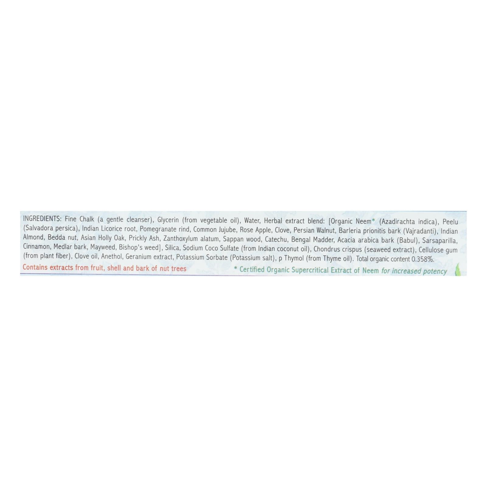 Discover the refreshing purity of this ayurvedic herbal toothpaste, meticulously crafted without mint to cater to those with sensitive palates. Infused with the natural fiber peelu and the invigorating essence of neem, this toothpaste supports optimal dental hygiene using a blend of 24 esteemed barks, roots, plants, and flowers. Carefully formulated without fluoride, gluten, artificial sweeteners, dyes, or harsh chemicals, it offers a gentle yet effective cleansing experience.