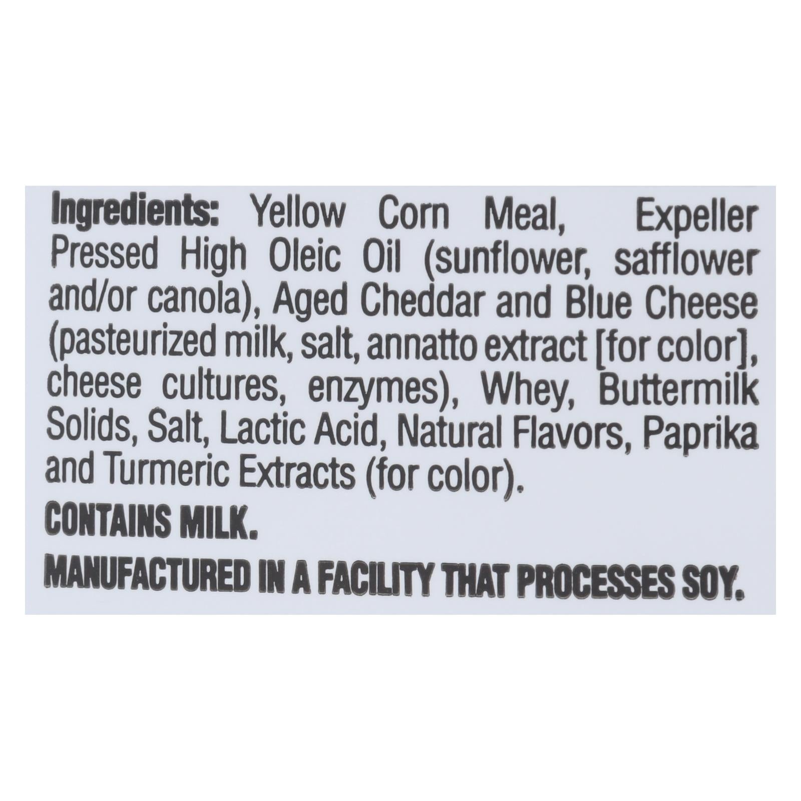Indulge in the delightful crunch of these baked cheese puffs, crafted with an irresistible blend of real aged cheddar and blue cheese. Each 5.5 oz. bag offers five servings of cheese puffs that are not only cholesterol-free but also packed with flavor, making them a perfect snack choice for any moment. Sourced from non-GMO corn and free from hydrogenated oils, these cheese puffs boast 0 trans fat per serving, staying true to a commitment to simple and wholesome ingredients.