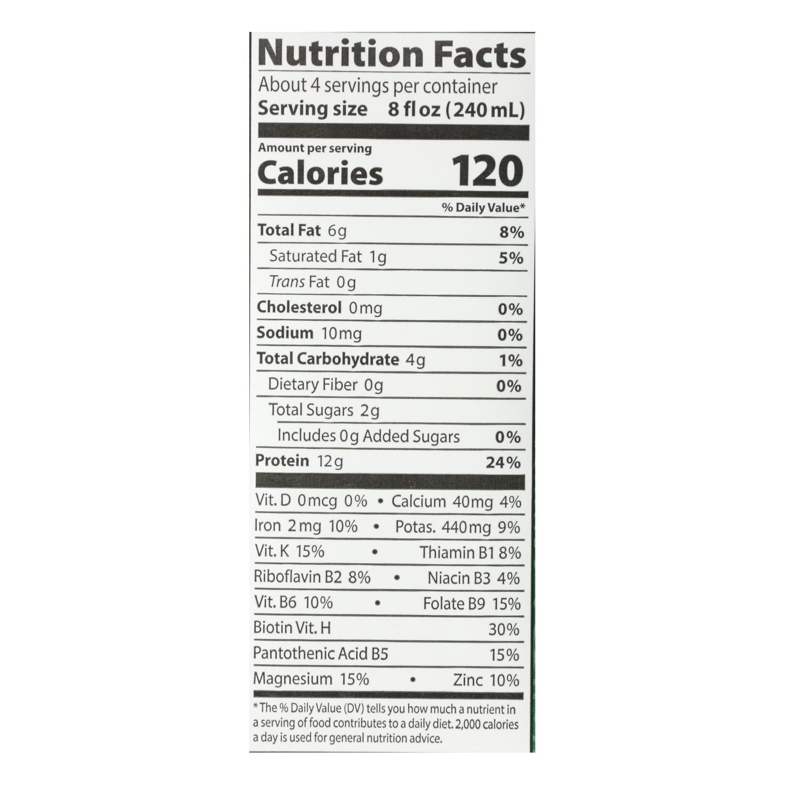 Savor the pure taste of organic unsweetened soymilk that is not only a nutritional powerhouse but also a delicious addition to your daily diet. Each serving delivers a robust 12 grams of protein, making it an excellent choice for those seeking a potent, plant-based protein source. This soymilk is crafted from select soybeans grown on U.S. organic family farms and combined with reverse osmosis purified water, ensuring top-notch quality and flavor.